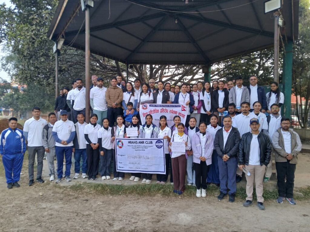 हेटौंडा । हरेक वर्ष नोभेम्बर १८ देखि २४ तारिखसम्म विश्वभर मनाइने ‘प्रतिजैबिक प्रतिरोध (AMR) सचेतना सप्ताह’ अन्तर्गत बागमती प्रदेश सरकारले आज विशेष कार्यक्रम गरेको छ। स्वास्थ्य मन्त्रालयको आयोजना तथा मदन भण्डारी स्वास्थ्य विज्ञान प्रतिष्ठान र प्रतिष्ठानअन्तर्गतको AMR Club को समन्वयमा गरिएको ‘Walk the Talk for AMR Awareness’ शीर्षकको पदयात्राले प्रतिजैबिकको दुरुपयोग र प्रतिरोधबारे सन्देश प्रवाह गरेको छ।